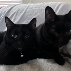 Shortly after moving in together, they adopted two black cats and named the brothers Mr. Messer Mister (Left) and Ollie Finn (Right).